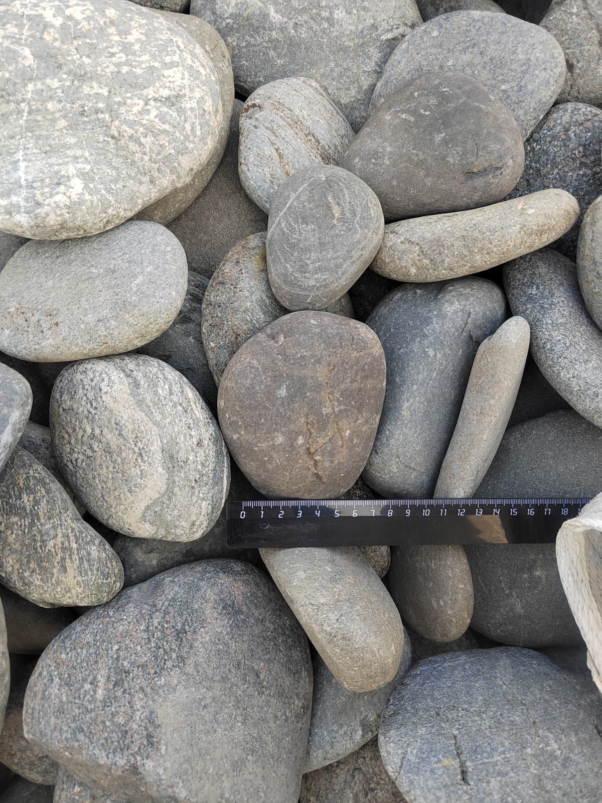 Плоская галька фракции 50-100 мм: удобный и недорогой декоративный материал.